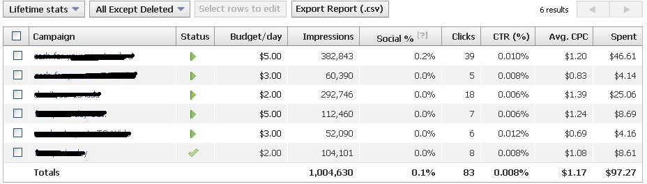 I have been running a test campaign for the past few weeks on Facebook and thought that the one million impressions served mark was a good time to present the value to my client. As you can see below the click-thru rate is not that high, but that was not the number one priority here, spreading our local brand was.