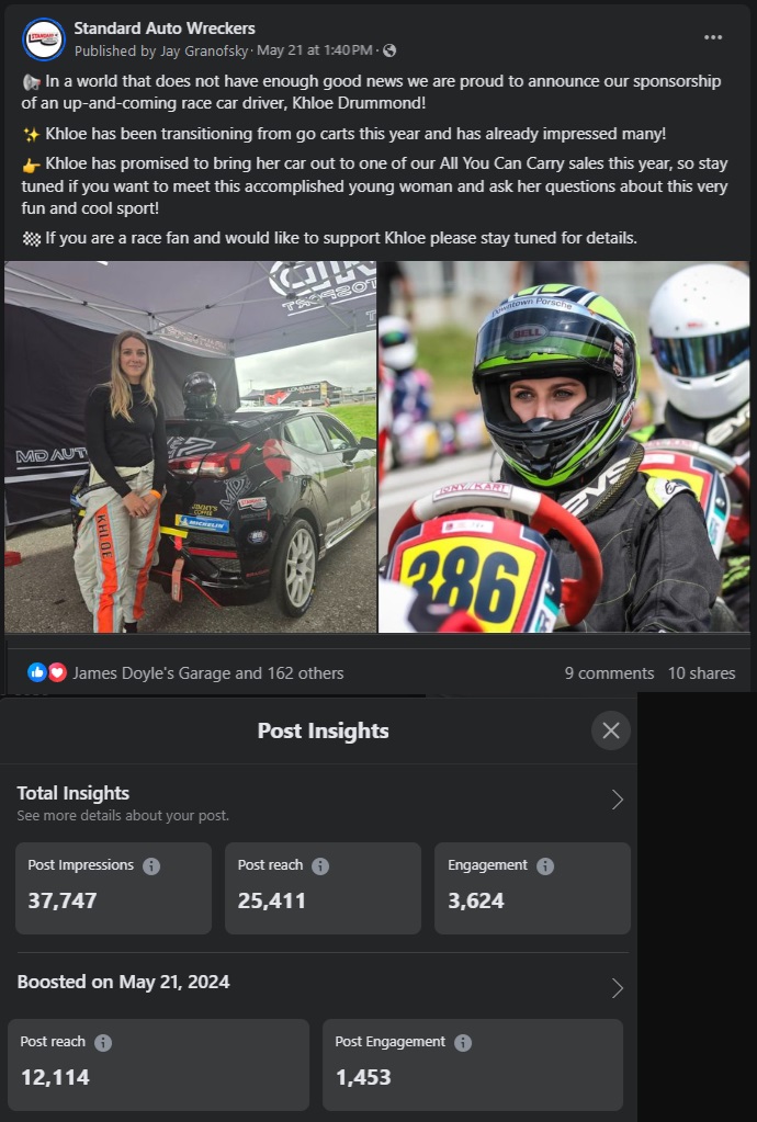 If you would like the opportunity to meet Khloe in person and ask her some questions about her car or car racing in general, feel free to come out to Standard Auto Wreckers next All You Can Carry Sale on July 27th at 1216 Sewells Road, Scarborough, Ontario M1X1S1.