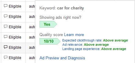 The last few months I have spent time with a few Google Adwords reps complaining about the ambiguity of the quality scores in Google Adwords and have yet not heard an explanation that makes much sense. With that said, I found this little surprise the other day!