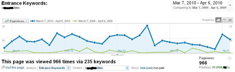 March 7, 2010 – April 6, 2010 Google sent 13,4xx non-paid visits via 2,8xx keywords